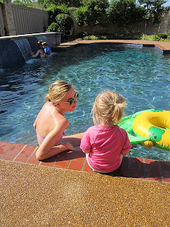 So a couple of weeks ago we took the babies to My Big Back Yard. One glimpse of the huge tree house and they were off. They climbed the stairs crossed the wobbly bridge and there they stood in front of the big green slide. I took off running to the bottom to catch the little daredevils (all the while shouting up to Clay at the top, "I dont think this is a good idea...") and before I knew it Murphy was in position and ready to go, all was well although he somehow came out backwards, which made me a little nervous about what happened in that dark tunnel, but nevertheless one piece=OK. Next it was Maddens turn she was so eager to be a daredevil just like Murphy...she sat down and was off! I stood at the bottom and she NEVER came out! With my camera ready to capture the biggest smile I could imagine, I kept taking pictures of the empty slide, then the screaming. She was stuck. She was really stuck, as in several minutes. Clay was at the top warding off other kids from sliding down on top of her and I was in a skirt at the bottom so I couldnt exactly shimmy up the slide in front of the birthday party going on right behind us....then the rescue. A man came running from the party hearing all of our screams flipped on his back and went up the slide to retrieve our daredevil.